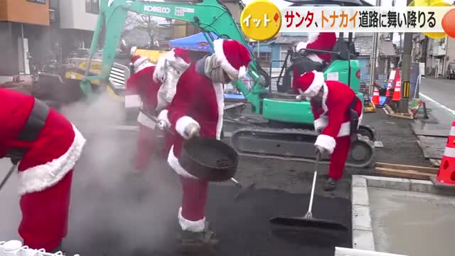 サンタクロースが工事現場にやって来た! 「世の中を温かく…」敦賀の道路舗装業者が企画 「ワクワクしちゃった」子供たちにはお菓子をプレゼント