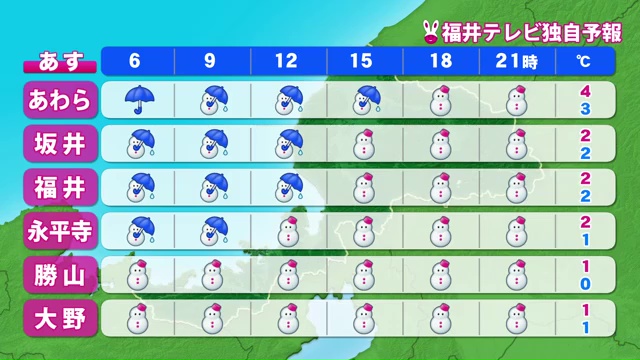 夕方にかけて平地でも積雪 26日の福井県内は冬型の気圧配置強まり荒れた天気に 年明け3日からは大雪に注意