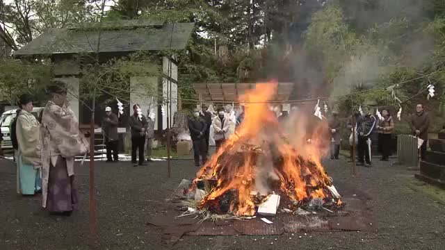 激しく燃え上がる炎に無病息災を願う 足羽神社で小正月の伝統行事「どんど焼き」 今年の恵方は「南南東」 福井   |ニュース|福井テレビ