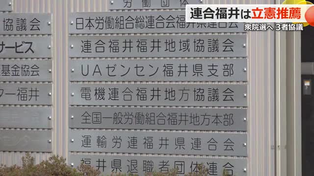 連合福井は「立憲の現職を推薦」 次期衆院選に向け立憲と国民の福井県連に方針伝える 福井1区は野党の候補者一本化ならず