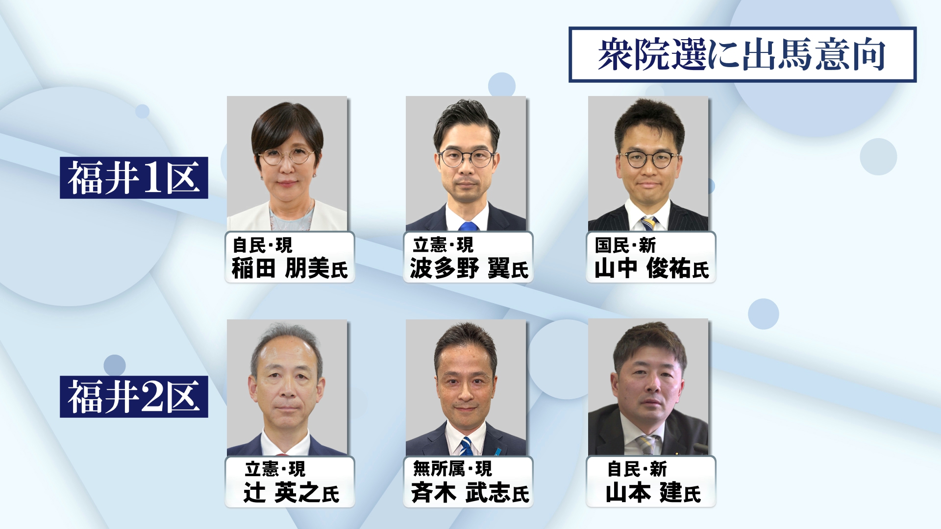 福井1区に3人、2区に3人が立候補を予定 衆院選の顔ぶれ 共産、参政も候補者擁立を模索