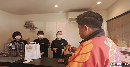 名勝・気比の松原を出発した隊長。地元の人と話をしつつ南に向かって進んでいくと…。「2go crapes」という三姉妹が経営するクレープ屋さんを発見!姉妹が大好きだったお母さんが作るクレープの“形”や“カスタード”を再現して販売しているんです。四角く畳まれた生地の中にはたっぷりのカスタード。濃厚な味なのにさっぱりとして「うまむすび」です。子どもでも食べやすい大きさと形も人気の理由なんだそう。常時8種類の味を用意するようにしているようで、今度は別の味を買いたいと思った桑原隊長なのでした。