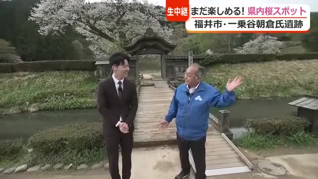 戦国武将の朝倉氏が100年にわたって栄華を極めた福井市の一乗谷朝倉氏遺跡から、幻想的に佇む薄墨桜を佐々木拓哉アナウンサーが中継でお伝えします。