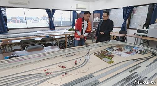 最後に訪ねたのは坂井市春江町ある「レンタルレイアウト8531」。ここは車両を走らせる線路を繋げた“レイアウト”を借りることができる場所なんです。オーナーの小木さんのこだわりは「広く長く」だそうで、部屋一面に線路が広がっています。レンタルできるのはレイアウト以外にも車両も借りることができるので、鉄道模型を持っていない人でも楽しめるようにしているんですって。コースには街並みが再現された場所や、水鏡のようになる“鏡”を敷いた場所など、ジオラマスペースもあって、お気に入りの車両の写真や動画を撮影する楽しみ方もできるんです。鉄道模型をしていると「長く走らせたくなる」のはよくあることだそうで、小木さんは「福井でそんなレイアウトが借りられる場所があれば」と始めたんですって。さっそく隊長も模型走行を隊長も体験。すると途中で店長が電気を消し、ナイトモードにしてくれました。暗い街の中、明かりをつけて走る鉄道模型はとても美しく、隊長は感動!鉄道模型の世界を存分に楽しんだのでした。