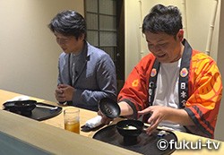内田さんが手掛けた越前漆器を使っている料亭があるとのことで、一緒にお伺いすることに。
