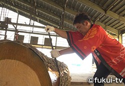 料理教室を後にした桑原隊長は、河端社長とともに福井市の製材所へ。