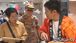 お客さんに福井県をPRしながら、いちょうのまな板の良さや魅力を積極的に説明。