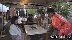 ということで、桑原隊長は、「やんちゃ屋台村」に来る地元のお客さんに「へしこ」を振る舞うことに。