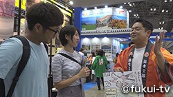 途中、会場内を歩きながら、他県のブースでも福井県をPRする桑原隊長。