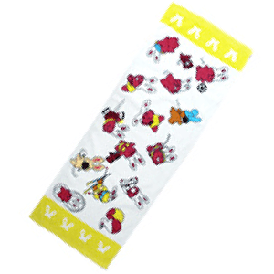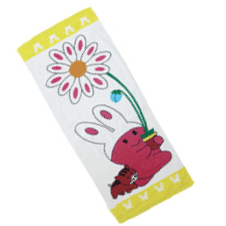 タオル素材で吸水性バツグン。かわいいイヤイヤちゃん帽子がデザインされています。