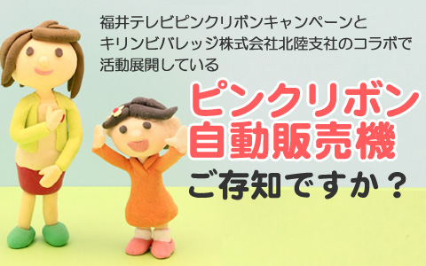 ピンクリボン活動に賛同していただいた企業や団体、学校などで設置していただいています。ピンク色の自販機で乳がん検診に関心を持っていただき、この自販機で商品を購入していただくことで、売上金の一部をピンクリボン活動の助成金として寄付させていただいています。 福井の女性がいつまでも元気で美しく輝いていてほしいから。。。 あなたも家族もお友達や仲間、みんな大切な人だから。。。 乳がん検診を“あたりまえに”受けてください。 ピンクリボン自販機の設置にご協力をお願いいたします。 |