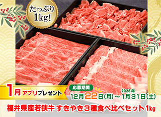 【アプリ限定】1月プレゼント 福井県産若狭牛 すきやき3種食べ比べセット 1kg<500ポイント>